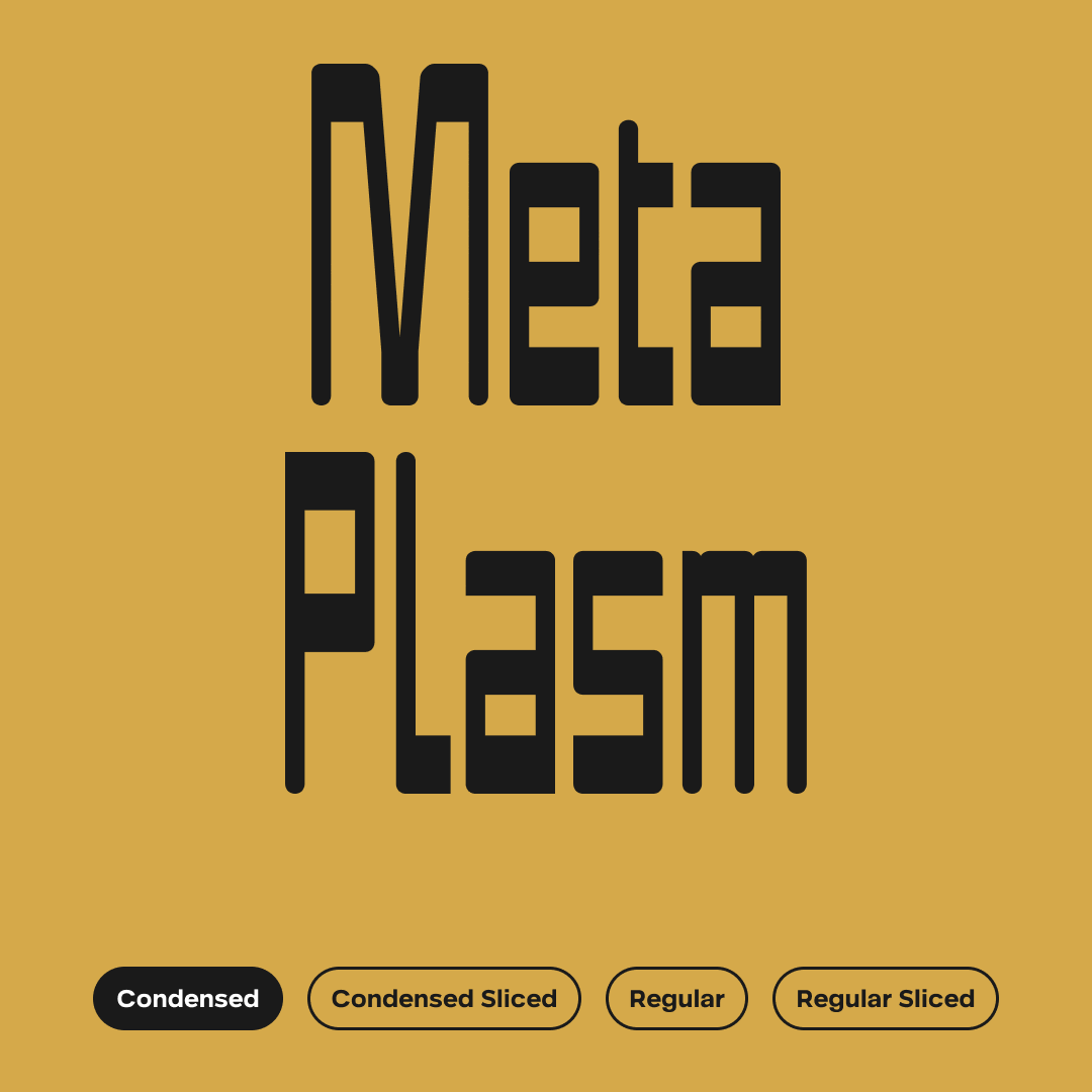 Let me introduce you Metaplasm, a new {surprise} display font. Half trendy, half-vintage, half sci-fi and half legible. Too many halves, but twice as fun. Fun because you can play with the width and the slice axis in the variable version.