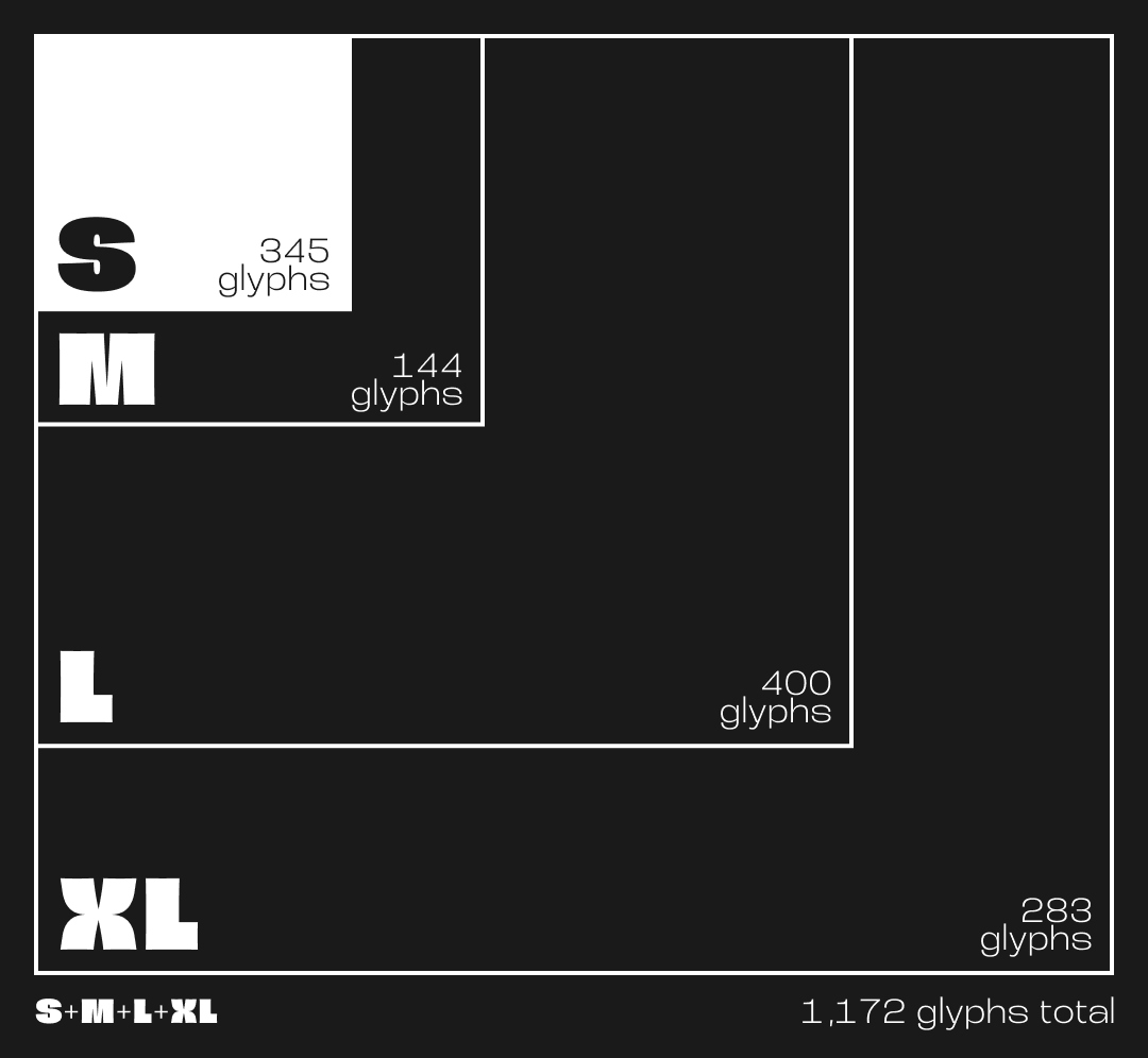 His project on GitHub is a series of character groups with different sizes (hence the metaphor from the clothing industry). He describes it as: ‘Latin character sets for fonts that want to support more than the European languages.’
